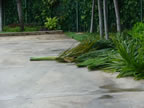Santiago de Cuba - Outside the Hotel Wind oeile reception - broken palm