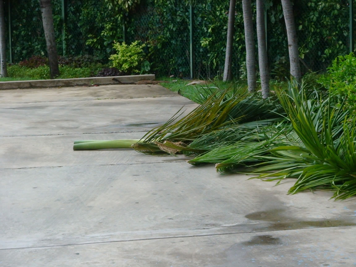 Santiago de Cuba - Outside the Hotel Meile reception - broken palm fonds